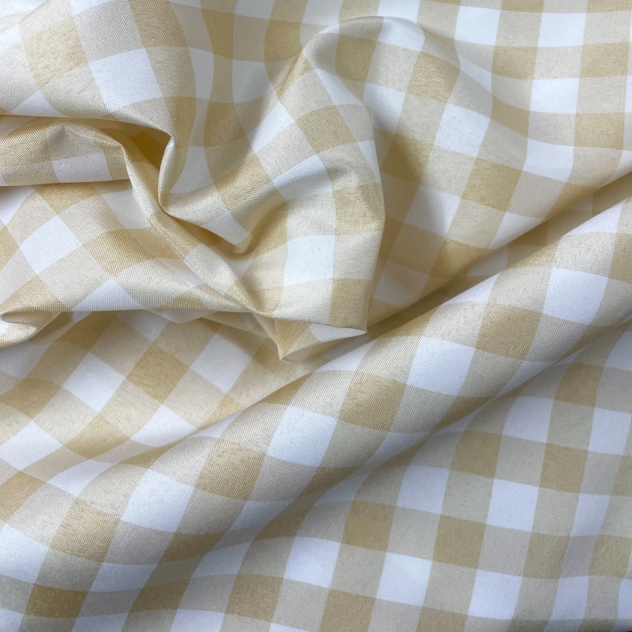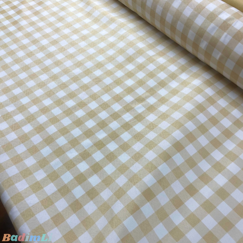 בד ברלינגטון משבצות בגוון בז׳ לבן.ארוג מחוטים בצבעים שונים (2 צדי הבד זהים).מעט מחוספס, אינו נוטה להתקמט בקלות.