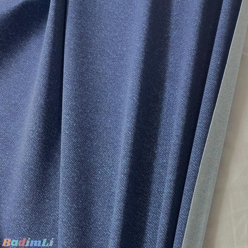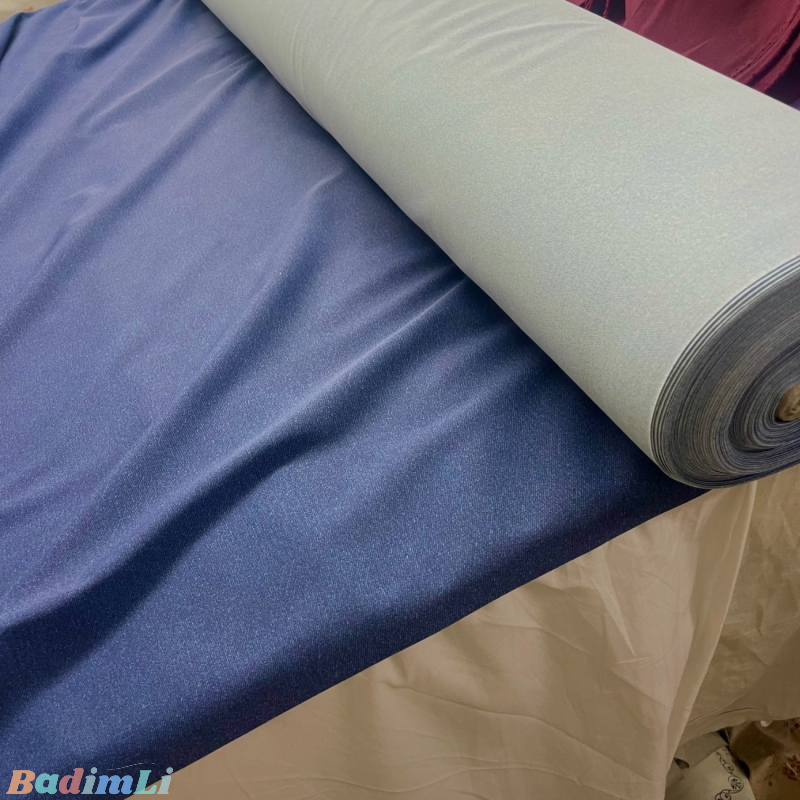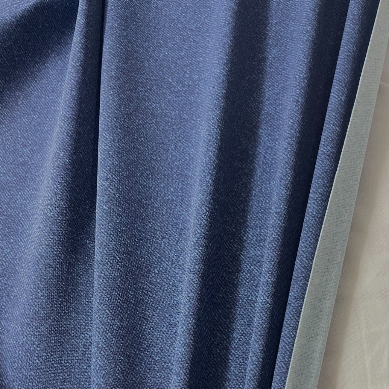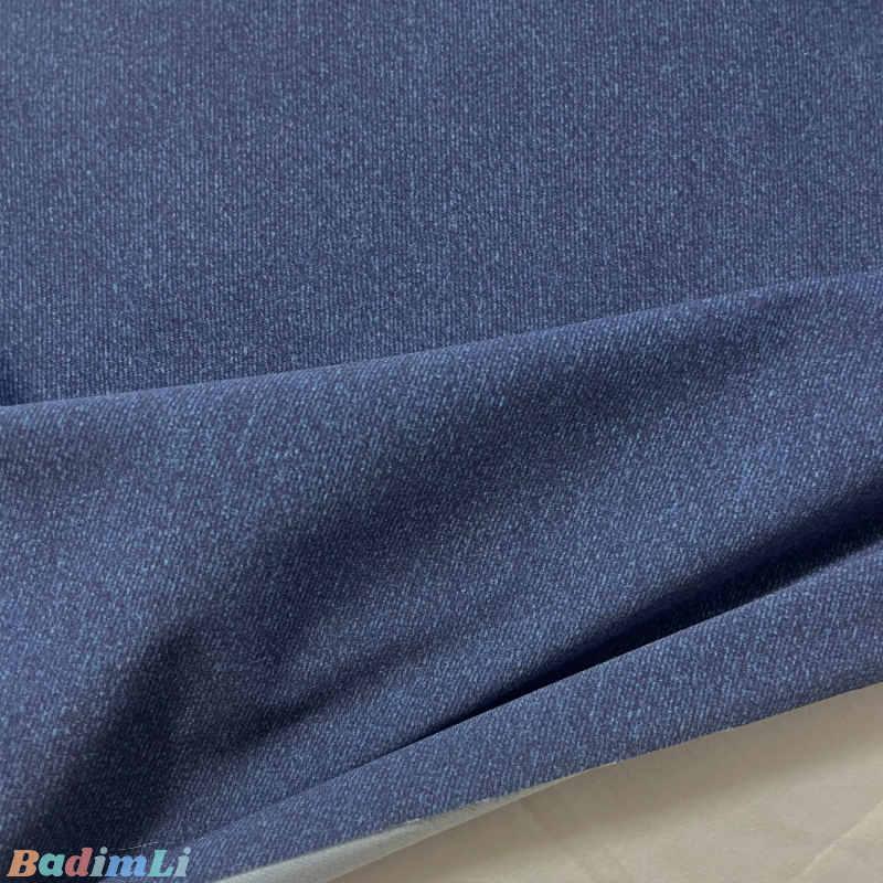 בד לייקרה 250 גרם עם הדפס במראה ג׳ינס בגוון כחול .בד יציב