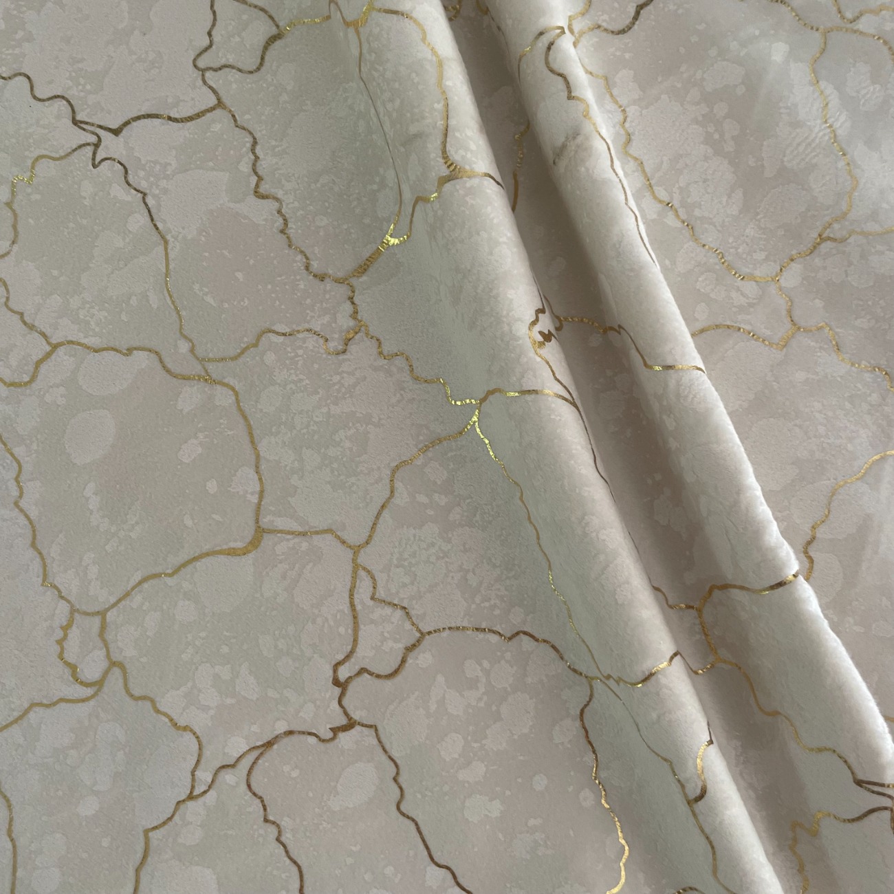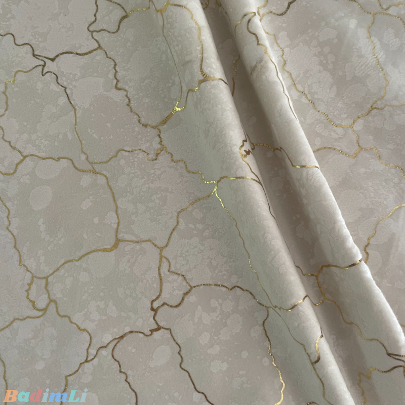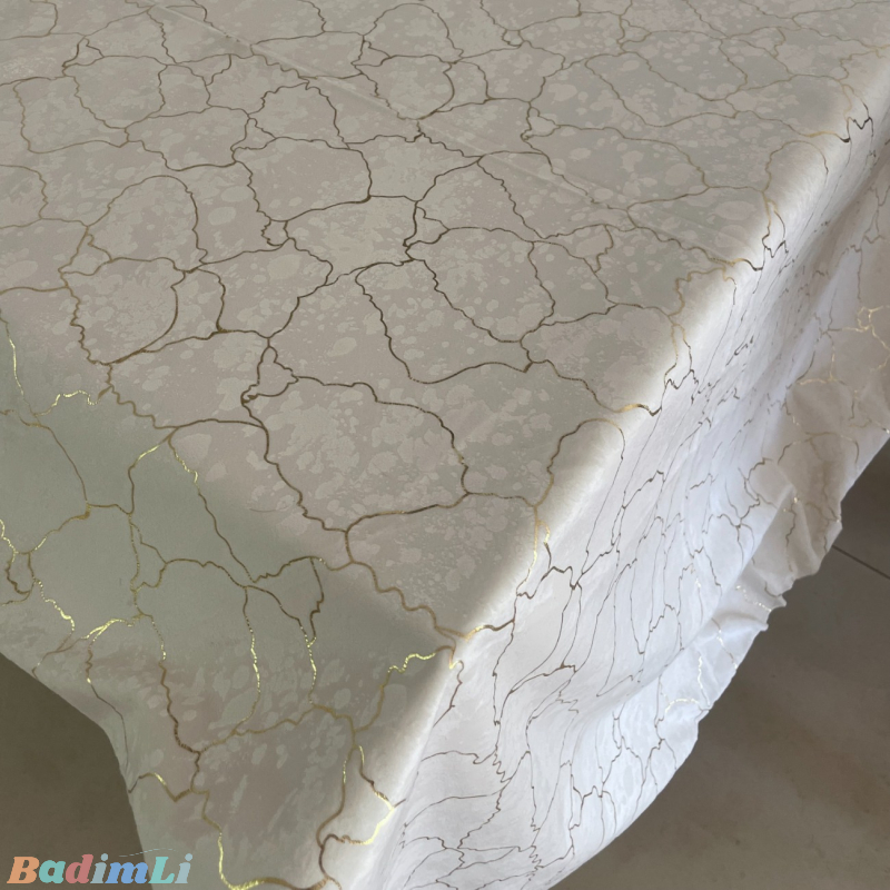 בד קטיפתי למפות במרקם משתנה בגוון קרם עם עיטור זהב